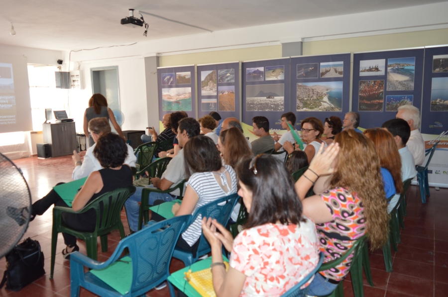 The travelling photo exhibition of the project had been presented in the City Hall of Chania from the 5th of June to the 27th of June 2016. On the occasion of the workshops organised in Chania and Alikampos village, the exhibition was transferred and set in the Cultural Centre of Alikampos on the 28th of June where it will be open to the public until the 26th of July. Residents of the area, visitors and tourists will have the chance to get informed of the NATURA 2000 sites in Crete, since the 18 banners of the exhibition present the benefits people get from 3 different types of ecosystems: mountainous, which characterise the Cretan mainland, agro - ecosystems and coastal areas, being a tourist attraction during summer.
