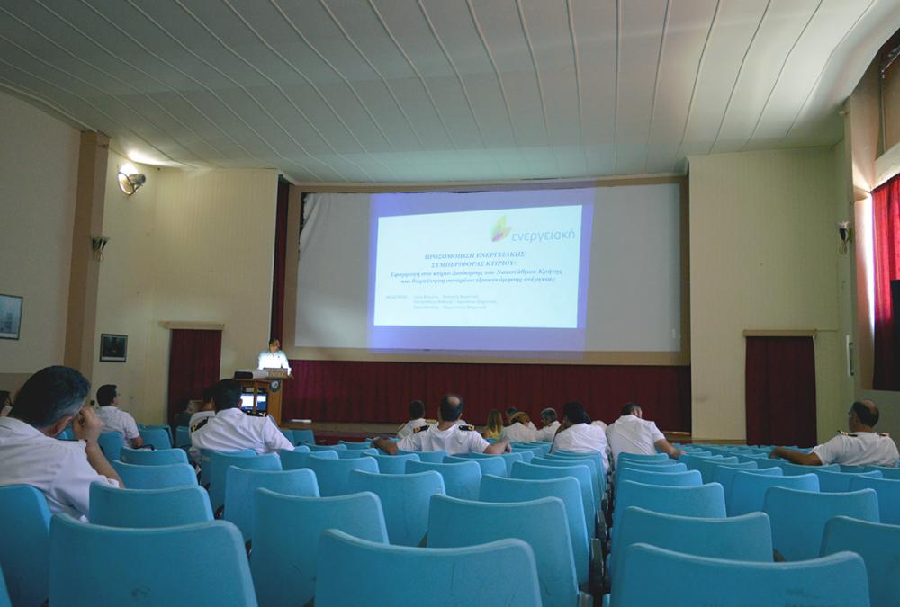 The “Energy Saving, Energy Management and Environment” was the subject of the workshop that was organized by the Energy Management Office of the Naval Base of Crete on Wednesday, July 13, 2016, at the Naval Base of Crete, Souda, Chania, Crete. The “LIFE Natura2000 Value Crete” project participated with an oral presentation, by Dr Michalis Probonas.